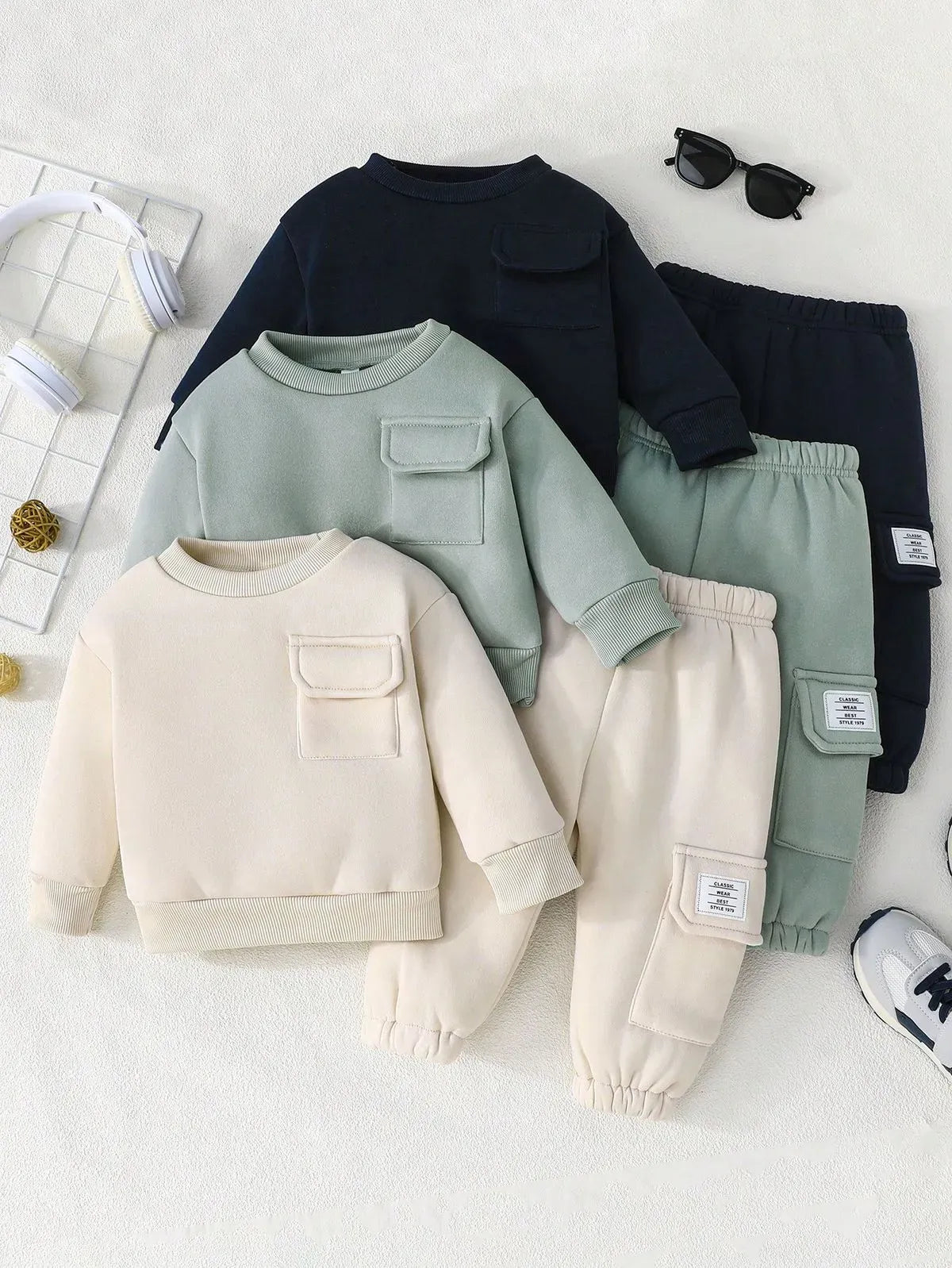 Unisex Baby Tracksuit Outfit Long Sleeve Embrodry Sweatshirts Jogger Set (Pack of 4)