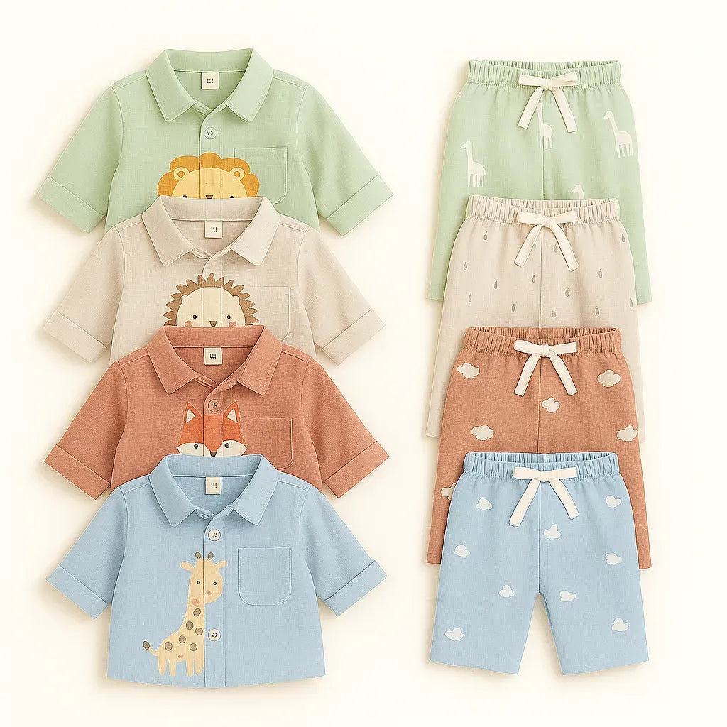 Summer Kids Boys Printed Linen Cotton Clothing (Pack of 4)