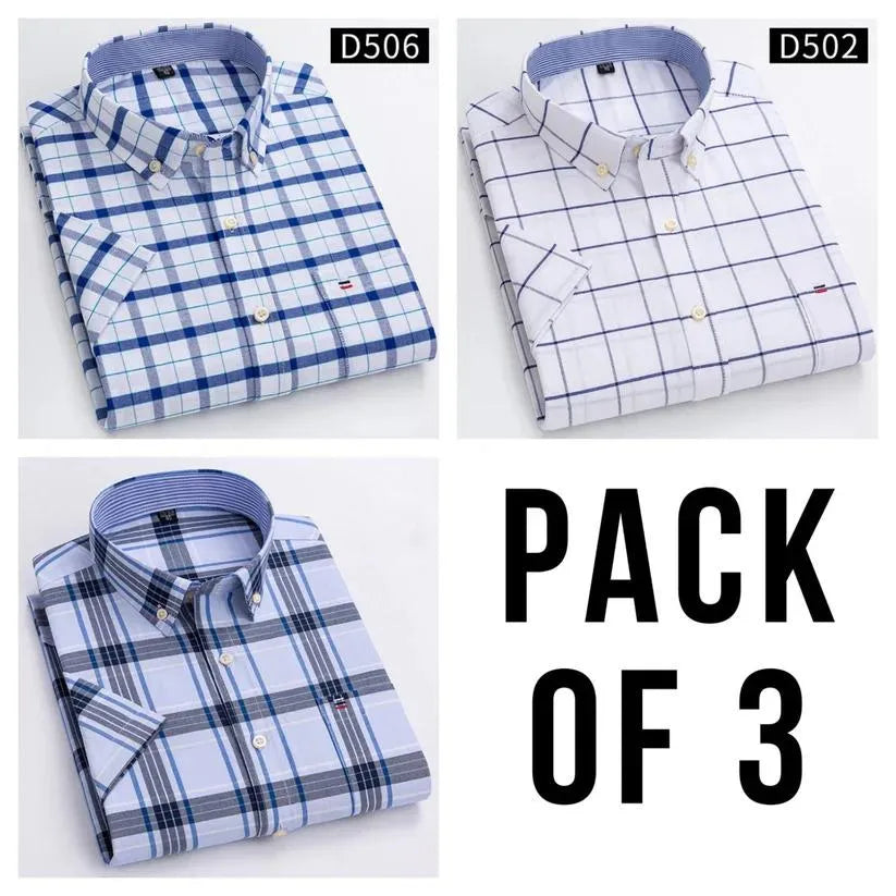 Plain & Check Premium Cotton Casual Shirts Pack Of 3
